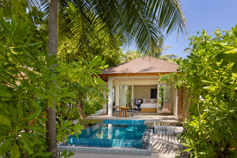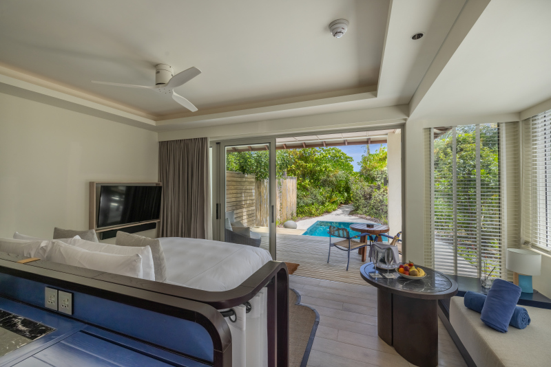 Two Bedroom Beach vila s bazénem (131 m2) – totožná jako kategorie výše, příjemným bonusem je soukromý bazének před vilou. Max. kapacita 3 dospělí + 2 děti nebo 5 dospělých.