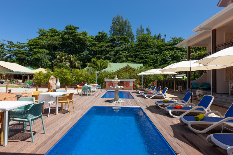 Apartmánové ubytování se nachází na ostrově La Digue, který je nejmenší ze tří hlavních seychelských ostrovů a jeho velikost je pouhých 3×5 km. Na ostrově se většina obyvatel i turistů pohybuje zejména na jízdních kolech a dostanete se sem pouze lodí z většího ostrova Praslin během 20ti minutové plavby. Apartmány neleží přímo u pláže, nejbližší pláž je Anse Reunion vzdálená cca 1 km od ubytování. Cocolux Luxury Apartments je součástí komplexu Casa de Leela a nachází se 1,5 km od přístavu (8 minutek jízdy předem smluveným autem či 25 minut pešky). Ačkoliv se toto ubytování nenachází přímo u pláže, tento drobný nedostatek vynahradí hostům přítomnost 3 bazénů, které mohou využít po dnech plných objevování místních kouzelných pláží a zákoutí.