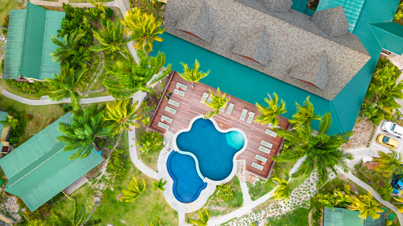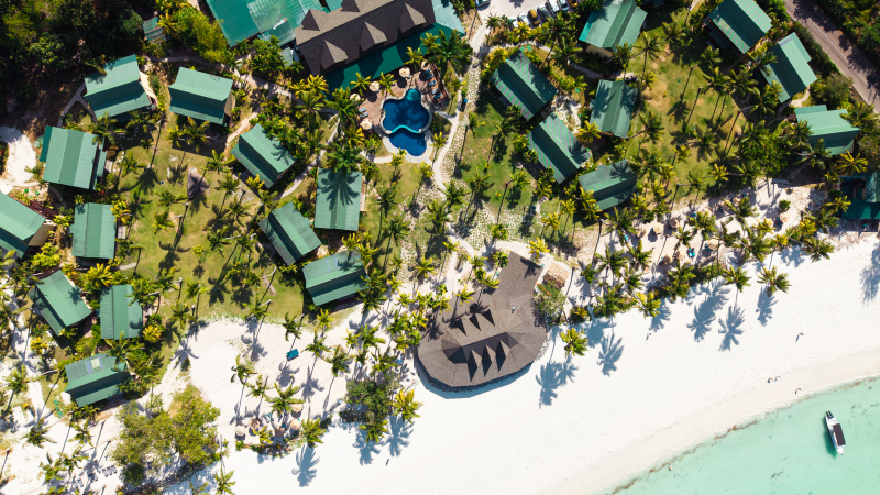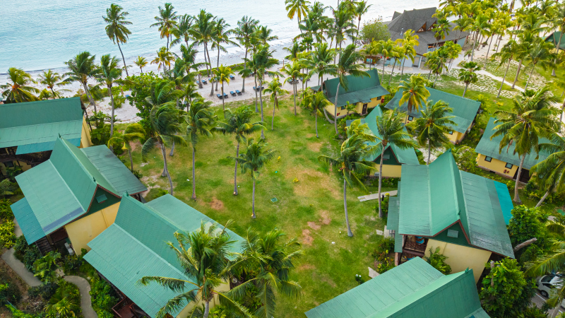 Uprostřed tropické zahrady jsou rozmístěny jedno a dvoupodlažní vilky, které poskytují komfort.