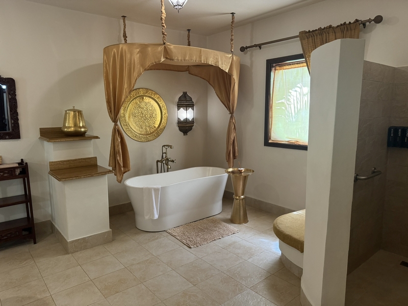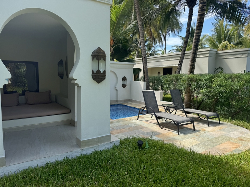 Luxusní butikový resort s pouhými 30 vilami se nachází na jihovýchodním pobřeží ostrova Zanzibar poblíž vesničky Bwejuu. Rozprostírá se podél stejnojmenné pláže s bílým jemným pískem hodnocené časopisem Conde Nast Traveler jako jednou z 30 nejlepších na světě. Pláž po celé délce chrání korálový útes a nabízí bohaté možnosti k potápění. Dostanete se sem za 50 minut autem z letiště. Resort připomíná dědictví Zanzibaru z éry sultánů a spojení arabské, swahilské a indická kultury. Je ukázkou dovedností místních řemslníků a oslavuje swahilskou architekturu. Uvidíte tu swahilské oblouky, složité ručně vyřezávané dekory, ručně vyráběný starožitný nábytek a mosazné lucerny a doplňky. Je to jako se vrátit o pár století zpět do éry sultanátu a jeho skvostných paláců.