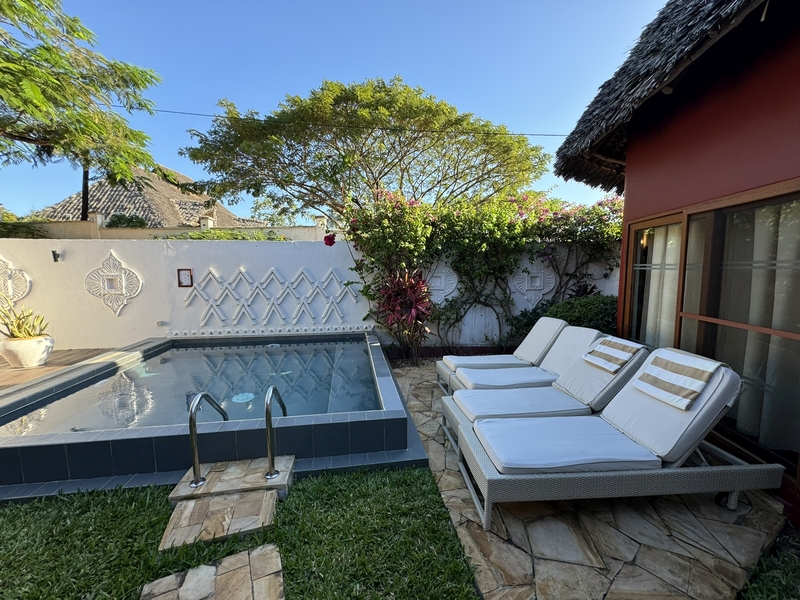Luxury Beach Vila (dříve Beach Vila) (3) – 200 m2 – vily jsou po kompletní rekonstrukci v roce 2022, umístěné přímo na pláži s otevřeným výhledem na oceán nabízejí luxus, komfort a soukromí. 3 vily reprezentují 3 duše prolínající se v Gold Zanzibar – arabská, africká a italská. Každá vila má 2 ložnice, 2 koupelny, velký obývací pokoj a vlastní bazén s přímým vstupem na pláž. Na terase je také nově jacuzzi. K vile náleží servis butlera.